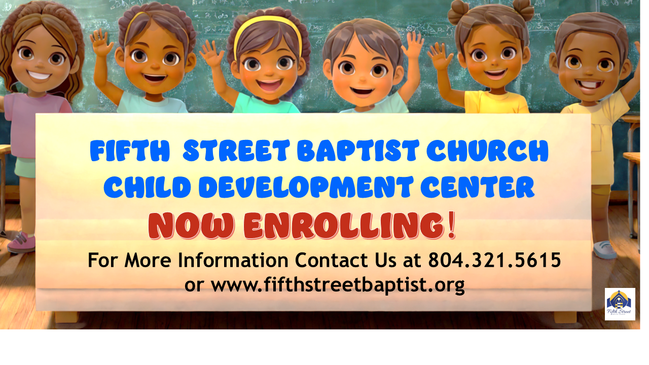 We are the Fifth Street Baptist Church and we are “Founded by Faith and Focused on Family.”
