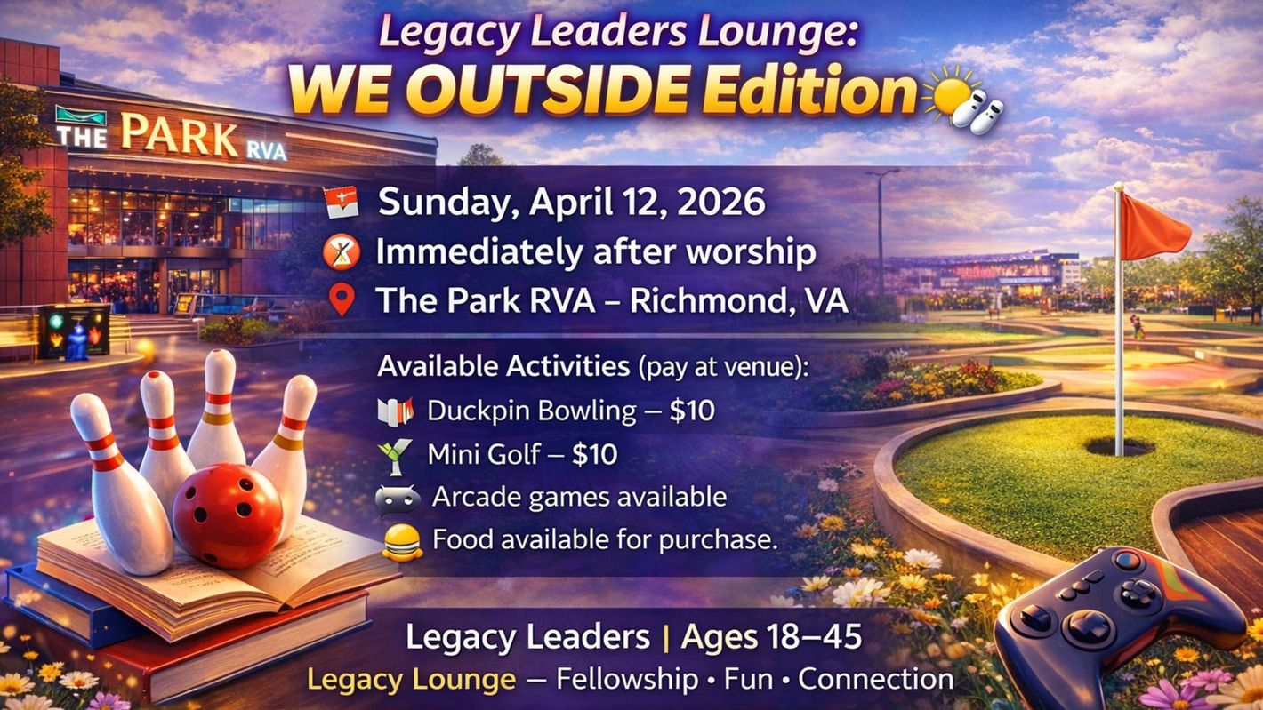 Sunday, April 12th - Legacy Leaders Lounge - WE OUTSIDE Edition - The Park RVA - Immediately Following Worship