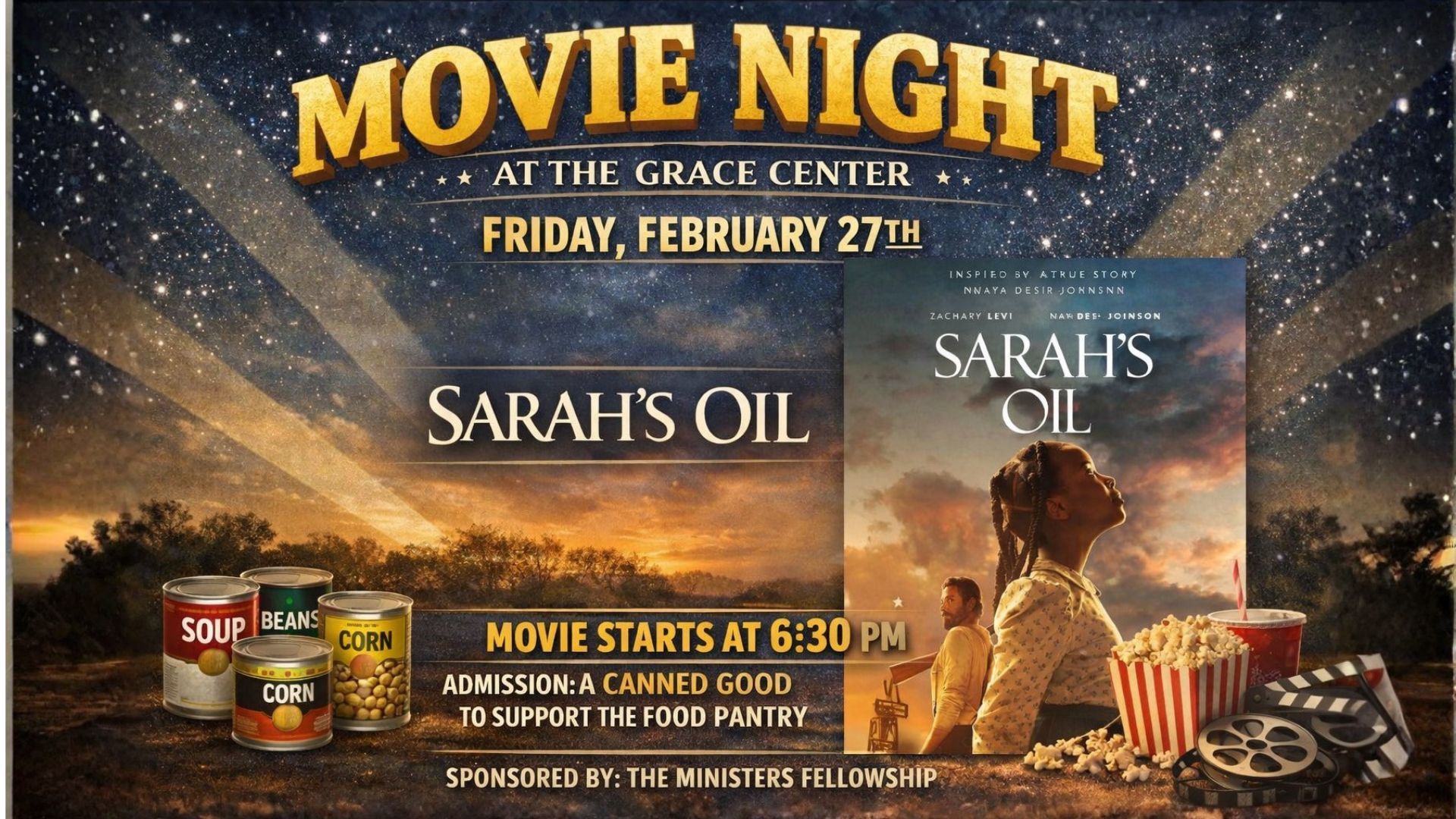 Friday, February 27th - 6:30 PM - Ministers Fellowship Presents "Sarah's Oil" Movie Night - The GRACE Center